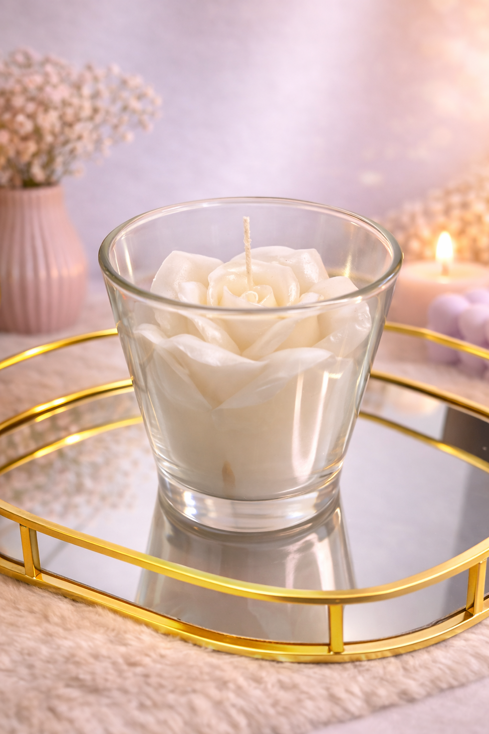 Luxe Geurkaars “Merci” met Stolp 🕯️🌸